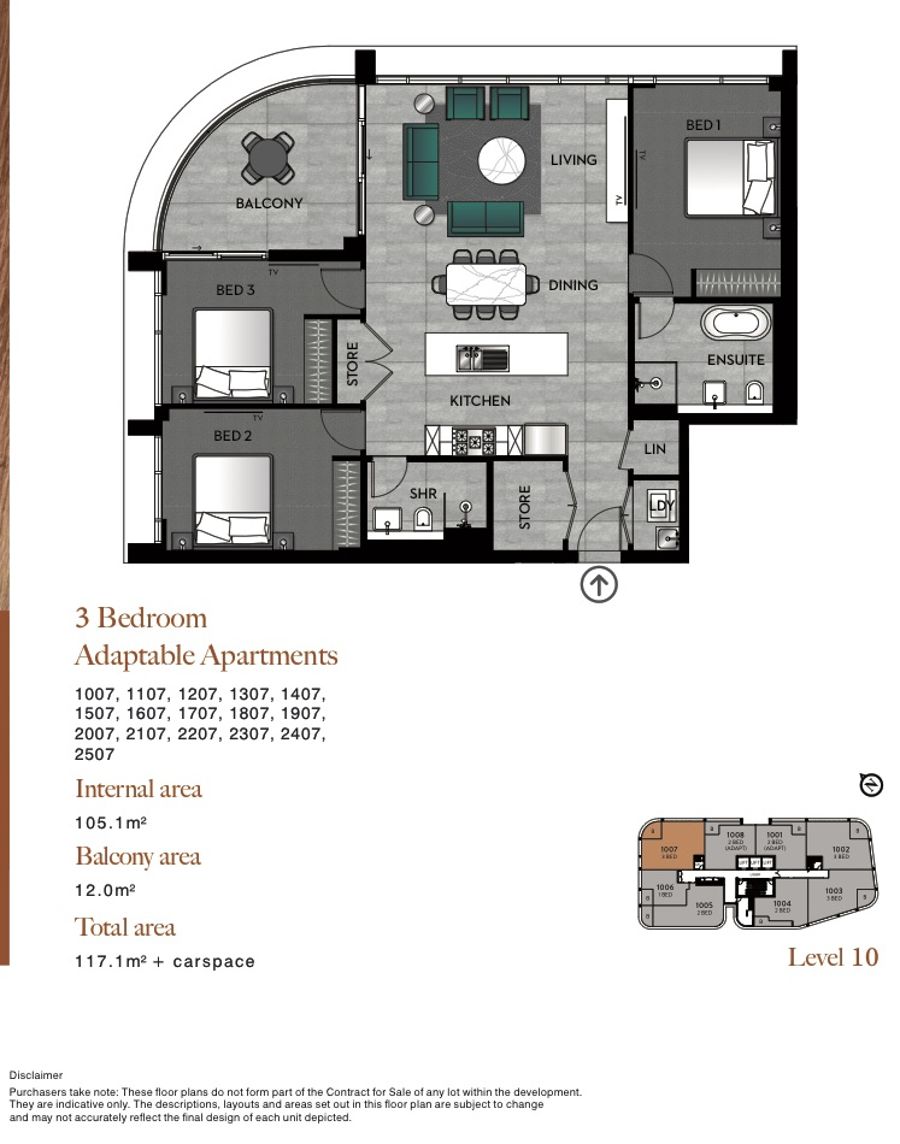 Approx.Internal Size : 105.1sqm + Balcony : 12sqm = 117.1sqm Plus 2 Tandem Car Space