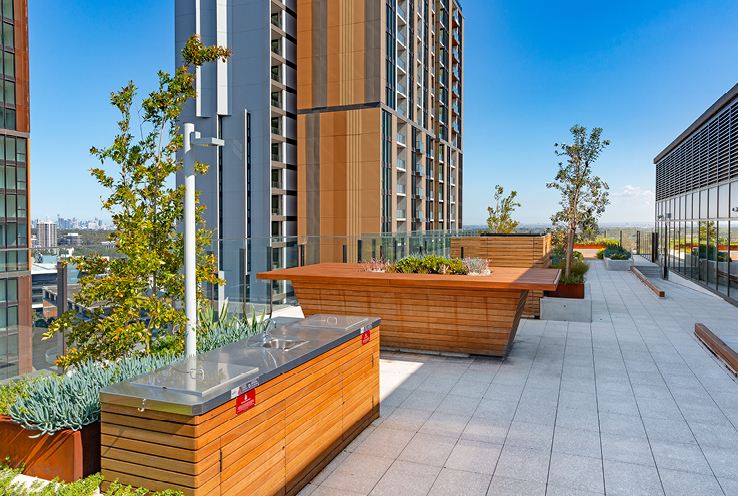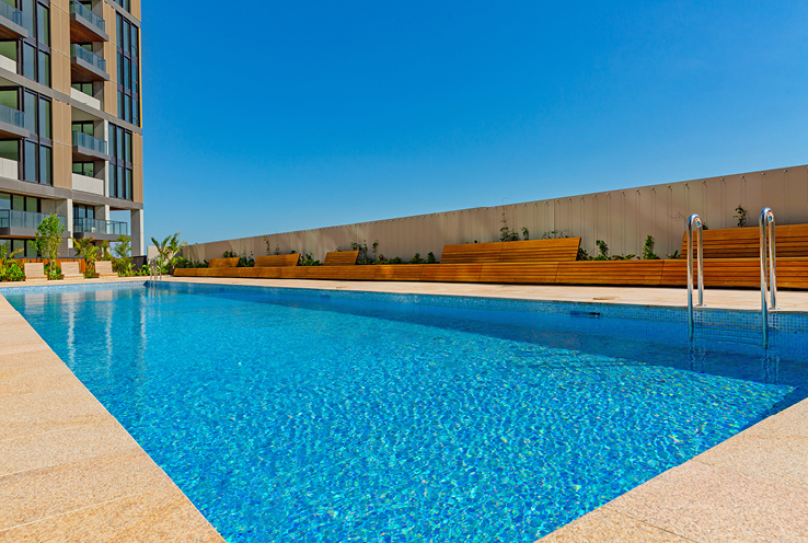 - Generous green spaces including, roof-top gardens with BBQs, gymnasium, swimming pool, kids water play and equipment and central park.