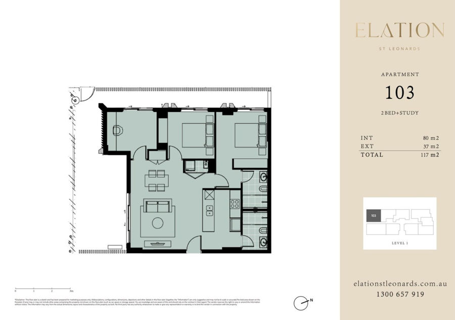 Luxurious 2-Bedroom + Study with Massive Courtyard in Prime St Leonards Location